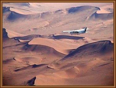 Then , leaving our bigger plane behind ... we changed to the 11 smaller Cessna 220s which would take us to our new camp in the Sossuslsvei Desert |