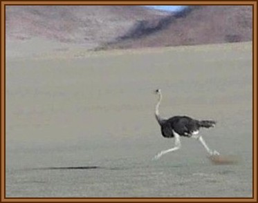 This goofy Ostrich decided to make a front-end run at our jeep ... and only veered off at the last minute. |