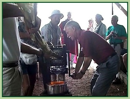 One day we visited a sugar cane plantation .... and Roy got to try his hand at the sugar cane press. |